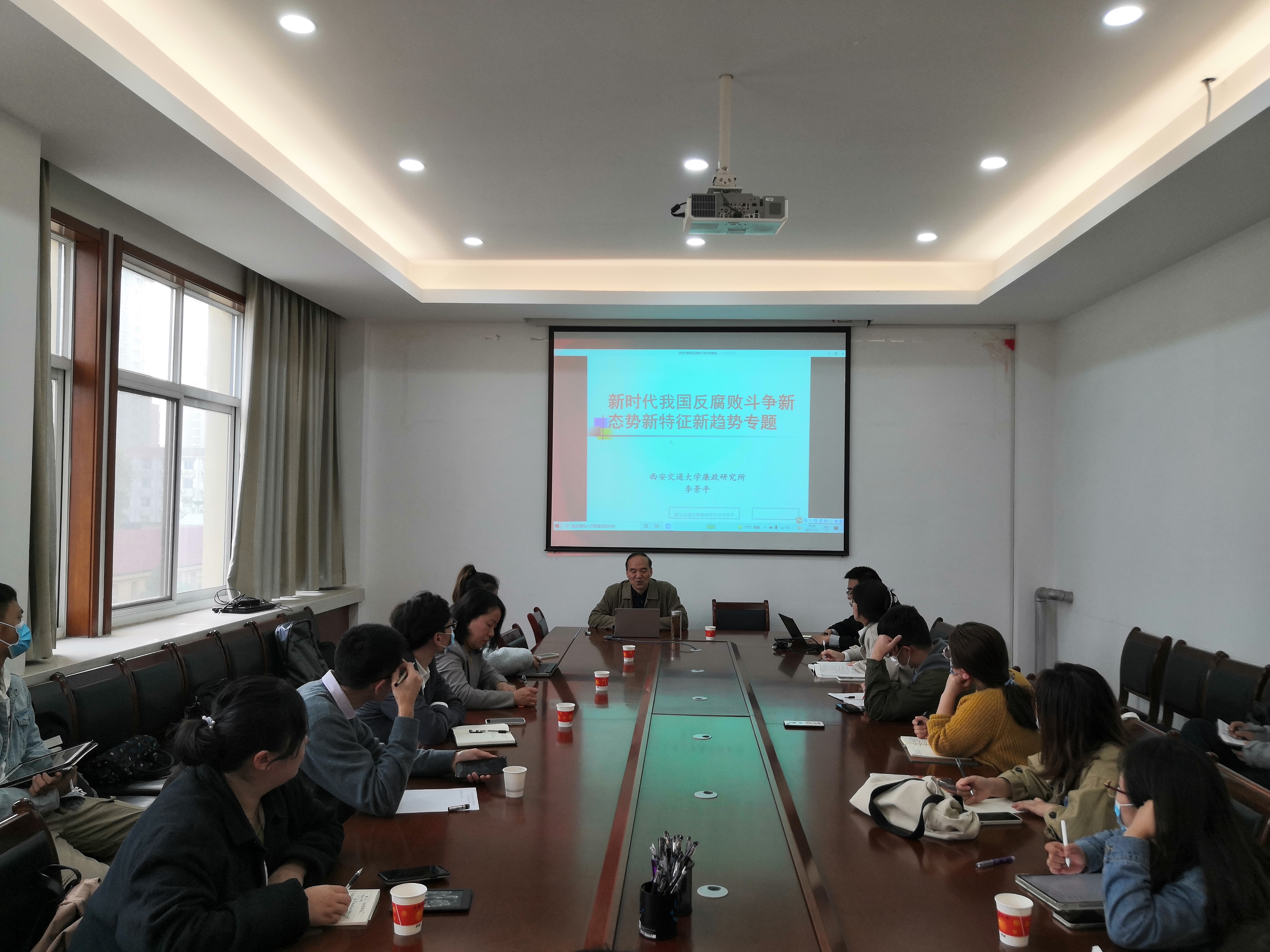 2021年11月3日下午,由德甲直播 (纪检监察学院)监察法学科、监察法教研室、监察法教研室党支部主办的“长安纪检监察论坛”第九讲在西北政法大学雁塔校区进行,并同时以腾讯会议形式在线上同步进行。西安交通大学马克思主义学院三级教授、博士生导师李景平做《新时代我国党风廉政建设和反腐败斗争新态势新特征新趋势研究》专题讲座。博士生导师褚宸舸教授主持并担任与谈人。副教授郑宁波、岳智慧博士、马宁博士以及张泽博士担任与谈人。我校研究生、本科生三十余人通过线上线下的方式参加了讲座。