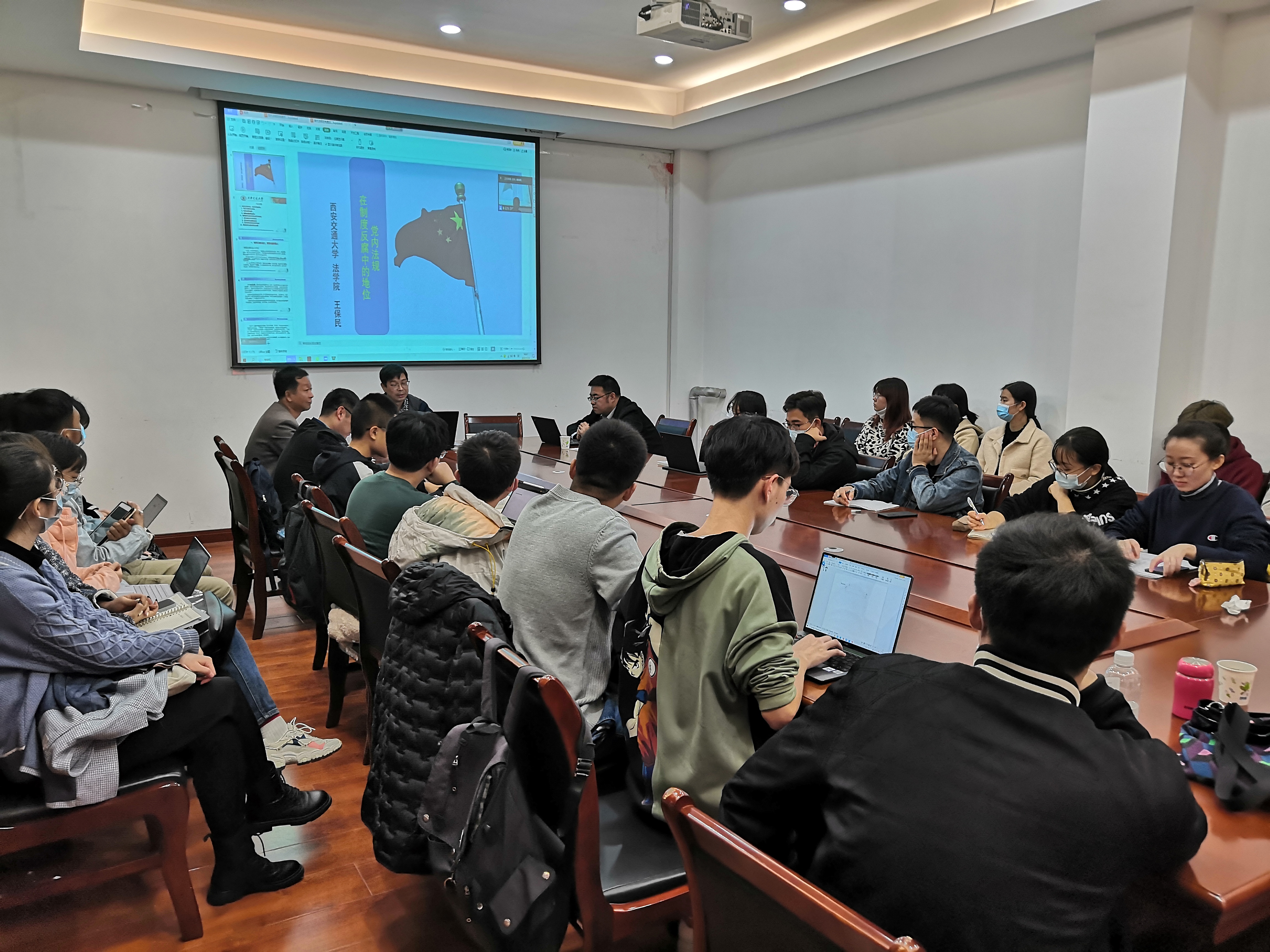 2021年11月3日19:30-21:30,作为学院党委“我为群众办实事”的系列活动之一,由西北政法大学监察法学科、监察法教研室、监察法教研室党支部主办的“长安纪检监察论坛”第10讲在西北政法大学雁塔校区中华法系与法治文明研究院会议室召开。邀请西安交通大学法学院教授、博士生导师王保民老师做题目为《党内法规在制度反腐中的地位》的专题讲座。参加讲座的有德甲直播 (纪检监察学院)院长姬亚平,各教研室教师、研究生代表,以及纪检监察实务界同志。