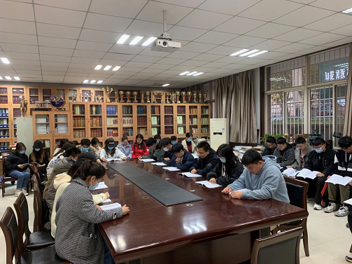 11月18日下午2时,2021级研究生党支部组织召开学习十九届六中全会精神会议,由组织委员杨青青同志带领支部全体党员学习《中国共产党第十九届中央委员会第六次全体会议公报》。