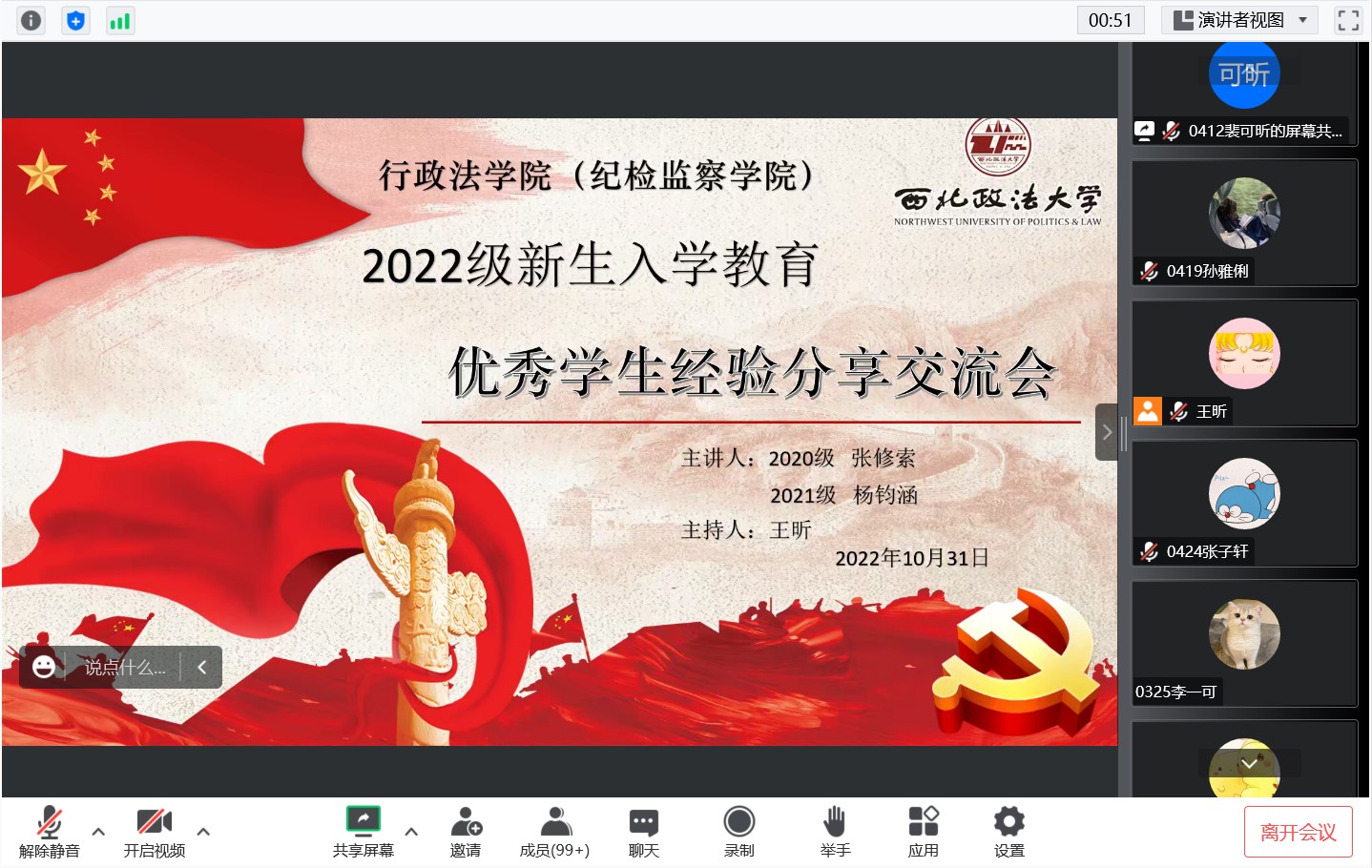 为了营造良好的学习氛围,增强2022级新同学们的学习信心和动力,解决新生自入学以来对于部分学科学习的困惑,并进一步彰显榜样力量。10月31日晚,德甲直播 (纪检监察学院)在线上举办优秀学生分享交流会。此次分享会邀请2020级张修索同学和2021级杨钧涵同学主讲,2022级新生辅导员王昕主持,学院全体新生参加。