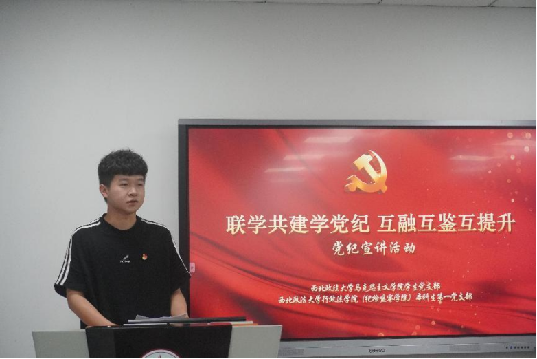 为深入开展党纪学习教育,引导学生党员学纪知纪明纪守纪,5月29日下午,由德甲直播 (纪检监察学院)本科生第一党支部和马克思主义学院学生党支部联合举办的“联学共建学党纪 互融互鉴促提升”主题党日活动在诚意楼207顺利开展。马克思主义学院团总支书记刘栩源、德甲直播 (纪检监察学院)本科生第一党支部书记周磊磊及支部全体党员参加。