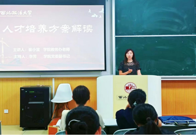 “希望大家将自己的大学四年安排得充实且精彩。”崔老师殷切寄语广大新生,鼓励同学们对照人才培养方案来确定自己的学习计划。崔老师通过解读,引导新生们了解了法学人才培养方案的结构及具体内容,帮助新生认识法学专业的课程设置,毕业资格要求等内容。帮助新生们明确学习目标,提早为自己进行职业生涯规划,尽快融入大学的学习与生活。