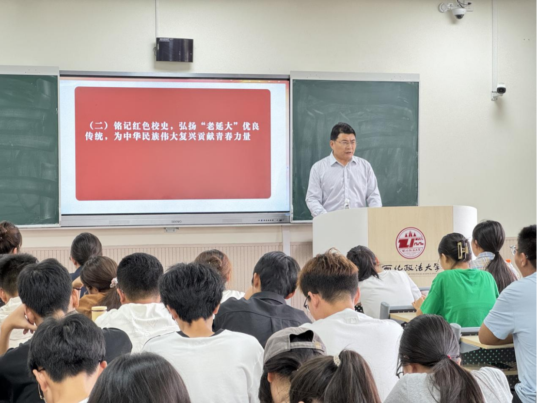 刘志彬从延安精神的科学含义、形成条件、内容体系、时代价值四个方面展开,深入阐述了新时代青年学习、传承、发扬延安精神的重要意义。他指出,延安精神是我们党宝贵的精神财富,我校从延安走来,具有深厚的红色基因和红色文化底蕴,希望同学们以实际行动弘扬延安精神,坚定理想信念、汲取奋斗力量;铭记红色校史,发扬“老延大”优良传统,立志做有理想、敢担当、能吃苦、肯奋斗的新时代好青年;践行法治精神,扎实法学根底,练就过硬本领,努力成为德法兼修的高素质法治人才,为国家的法治建设贡献自己的青春力量。