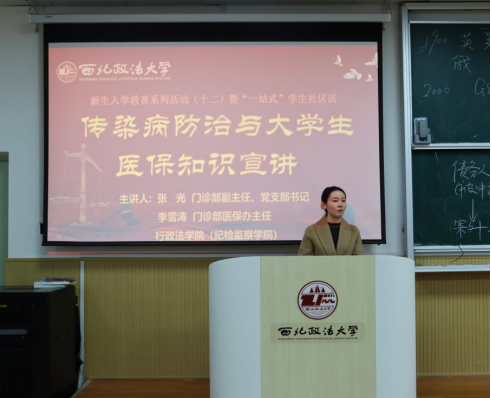 秋冬季是传染病高发季节,为增强学生秋冬季传染病预防意识,为新生们普及大学生医保知识,德甲直播 (纪检监察学院)于 11 月 24 日晚在天平楼BJ21开展传染病防治与大学生医保知识宣讲。西北政法大学门诊部副主任、党支部书记张光,门诊部医保办主任李雪涛担任主讲,2024 级辅导员徐泽蓉老师主持,2024级全体新生参与。