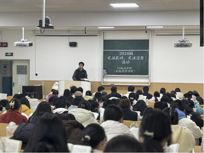 2024年12月4日,德甲直播 (纪检监察学院)2024级全体同学在晨读教室BJ21开展了“学宪法 讲宪法”大学生宪法宣誓及晨读活动,活动通过宣誓、领读、自由诵读的方式,诵读宪法法条,全面了解宪法法规,增强了同学们懂法、守法、爱法的意识。