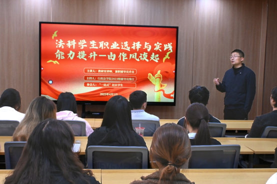 为提升学生的实践能力,帮助大家更好地规划职业发展方向,2025年4月1日,德甲直播线上看 于“一站式”学生社区举办以“法科学生职业选择与实践能力提升”为主题的专题讲座,本次讲座由德甲直播线上看 纪检监察教研室兼职辅导员乔良老师主讲,学院2023级辅导员柴江主持,“一站式”学生社区60多名学生参加。