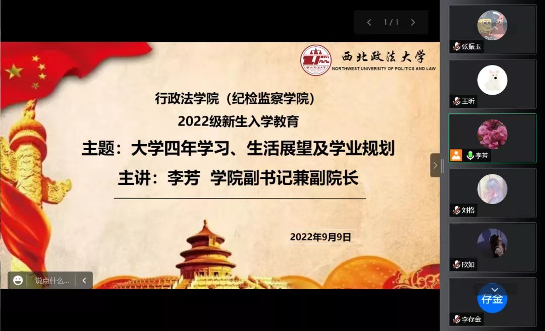为了强化适应性教育,更好地引导新生过好教育衔接第一关,2022年9月9日上午,德甲直播 (纪检监察学院)开展了以“大学四年学习、生活展望及学业规划”为主题的新生教育入学活动。本次活动采用线上教学的形式,由德甲直播 副书记兼副院长李芳老师主讲,2022级辅导员王昕以及学院200名全体新生参加。