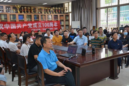 与会师生高唱国歌,认真聆听总书记重要讲话,共庆建党一百周年。