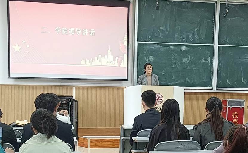 首先,学院党委书记赵玎玎代表学院党委向本次大会的召开表示热烈祝贺。她提到,召开学生代表大会和研究生代表大会是学院青年学生政治生活的一件大事,是团结凝聚广大青年学生听党话、跟党走,以高度的热情参与学校治理与发展的重要会议。此外,赵书记给同学们提出了三点期望:一是希望广大青年学子坚定理想信念,涵养家国情怀;二是希望学生会进一步加强组织建设,落实规范化、高标准建设;三是希望更好地发挥学生会的作用,积极开展德育一体的活动。