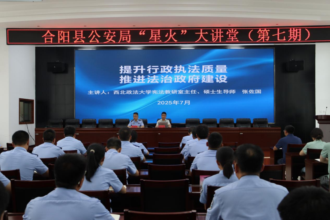 在普法宣讲期间,团队指导教师、德甲直播线上看 宪法教研室主任张佐国在合阳县公安局,面向各所队法制员、业务骨干和新入职民警围绕“提升行政执法质量、推进法治政府建设”做专题讲座。针对基层公安行政执法过程中出现的常见问题,张佐国提出了一系列切实可行的防范执法风险、构建执法监督体系的具体措施,为提升基层行政执法水平提供了有力的指导。