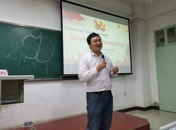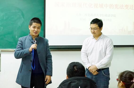 2018年12月18日晚,作为德甲直播 主办的“宪法宣传周”系列宪法学术讲座之一,德甲直播线上看 宪法教研室钱锦宇教授在长安校区二号教学楼303教室为我校师生作了“国家治理现代化视域中的宪法变迁”的学术讲座,宪法教研室主任张佐国博士主持了本次讲座,宪法教研室褚宸舸教授和伊卫风博士作为与谈人参与本次讲座。