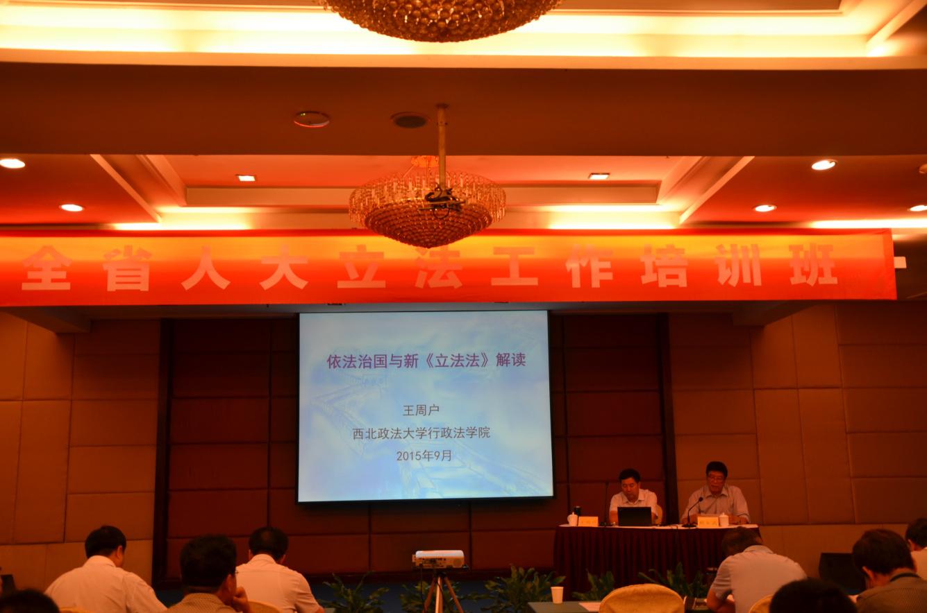陕西省人大常委会法工委与西北政法大学合作举办的“全省人大立法工作培训班”于2015年9月13日至18日在西安举行,来自全省各设区市的人大常委会有关负责人和相关工作人员近一百二十人参加了培训。基于地方政府法治建设研究中心曾先后成功举办了 “省级治理现代化与地方立法评估研讨会”、受托为省人大常委会法工委研究论证并提交的陕西省2015年立法计划评估报告获得采用以及对地方立法一系列卓有成效的研究成果,培训班邀请中心六位教师承担了本次立法培训的主要授课任务。