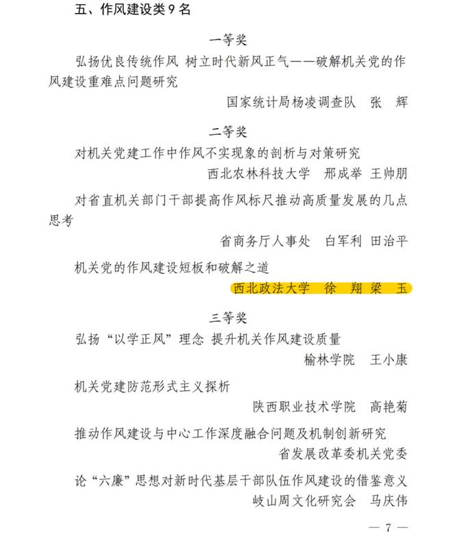 德甲直播线上看 徐翔副教授和硕士生梁玉联合撰写的《机关党的作风建设短板和破解之道》一文,荣获此次征文活动“作风建设类”二等奖。