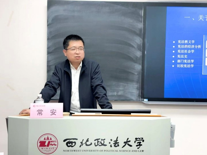 2026年4月22日晚,西北政法大学“终南山公法学术沙龙(第三期)”在雁塔校区成功举办。本期沙龙由西北政法大学副校长、宪法学与行政法学专业导师组组长常安教授讲授“关于宪法学研究方法的思考:从‘依宪治国’概念谈起”,德甲直播 (纪检监察学院)科研副院长周敏教授主持。