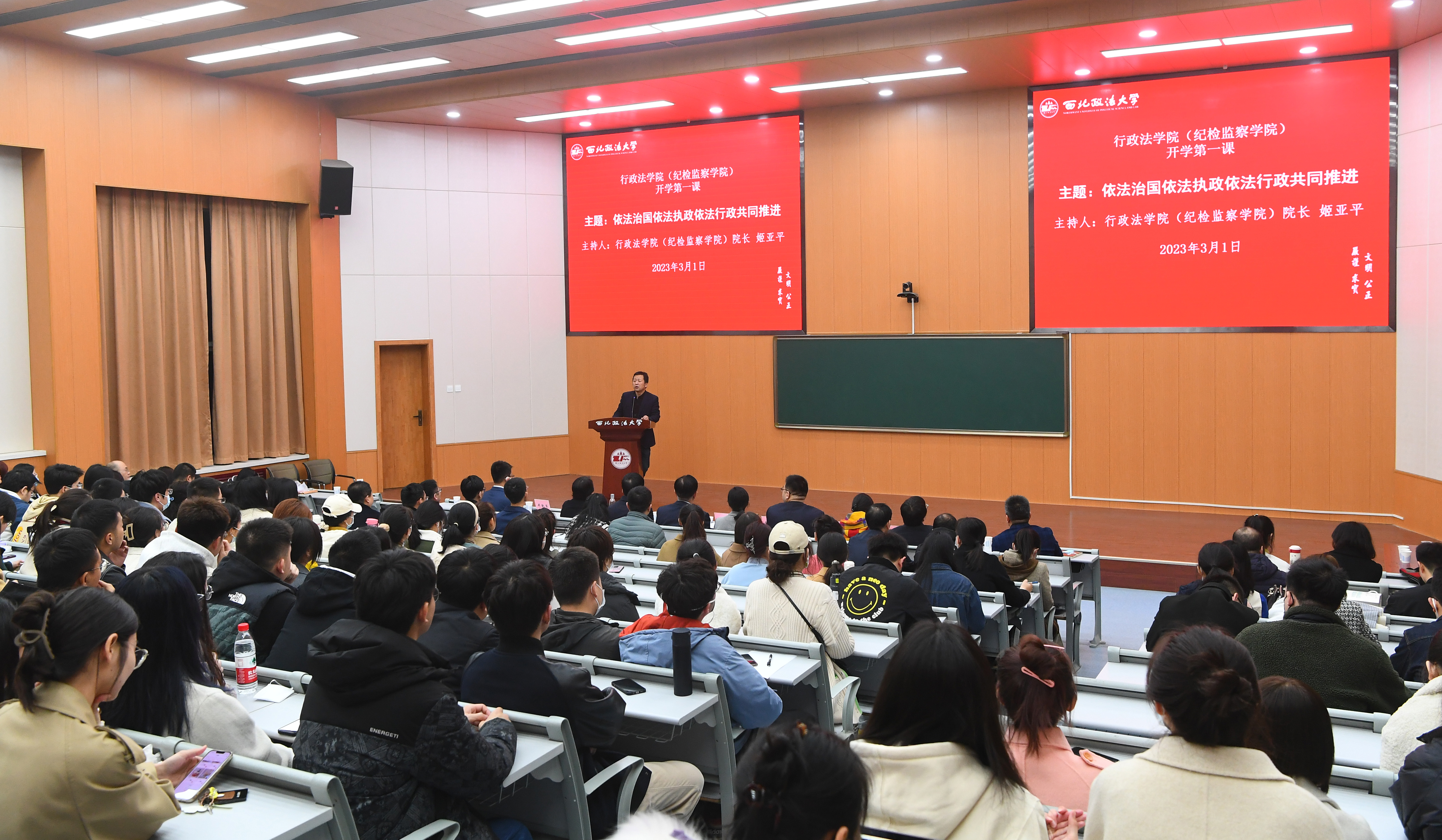 (纪检监察学院)院长姬亚平、党委书记赵玎玎,研究生院副院长马成以及学院全体教职工、各年级硕士研究生共160余人参加。