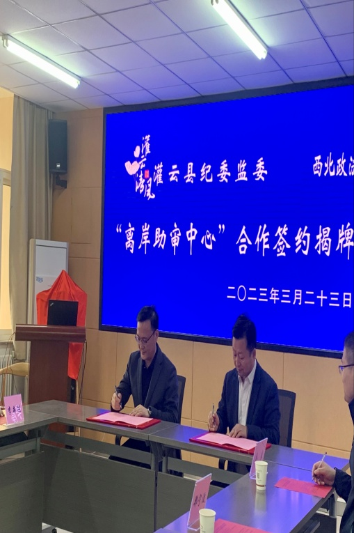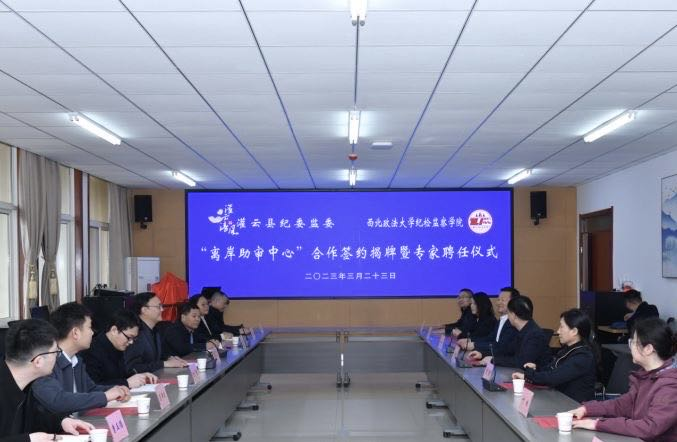本着“优势互补、资源共享、互惠双赢、共同发展”的原则,为促进校地双方建立长期有效的合作关系,3月23日上午西北政法大学纪检监察学院与江苏省灌云县纪委监委在我校诚意楼518会议室举行了“离岸助审中心”合作签约揭牌暨专家聘任仪式。西北政法大学校党委副书记、纪委书记、监察专员肖道远、纪检监察学院院长姬亚平、纪检监察学院党委副书记李芳、江苏省灌云县委常委、县纪委书记、县监委主任蒋颂华、灌云县纪委常委边进、灌云县监委委员张步绿、灌云县监委委员范本庆、灌云县纪委审理室主任徐顺玲、灌云县纪委办公室主任曹正德、灌云县纪委干部室副主任李书缓等双方代表参加了仪式。仪式由西北政法大学纪检监察学院姬亚平院长主持。