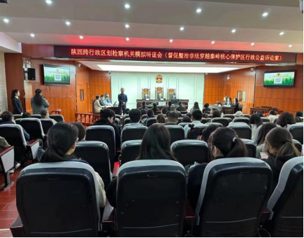 活动主要是展现听证程序的过程,让同学们感受司法力量在真实案件中的运用。模拟听证会上,检察人员、行政部门人员、专家、听证人以及人大监督人员是检察院的工作人员,我校学生有幸参与其中两个角色。本案是一起典型的真实发生在我省秦岭区域的跨区划行政公益诉讼案件,相当大的人流量长期随意跨区县、跨市穿越秦岭核心保护区,损害了秦岭的生态环境和生物多样性。