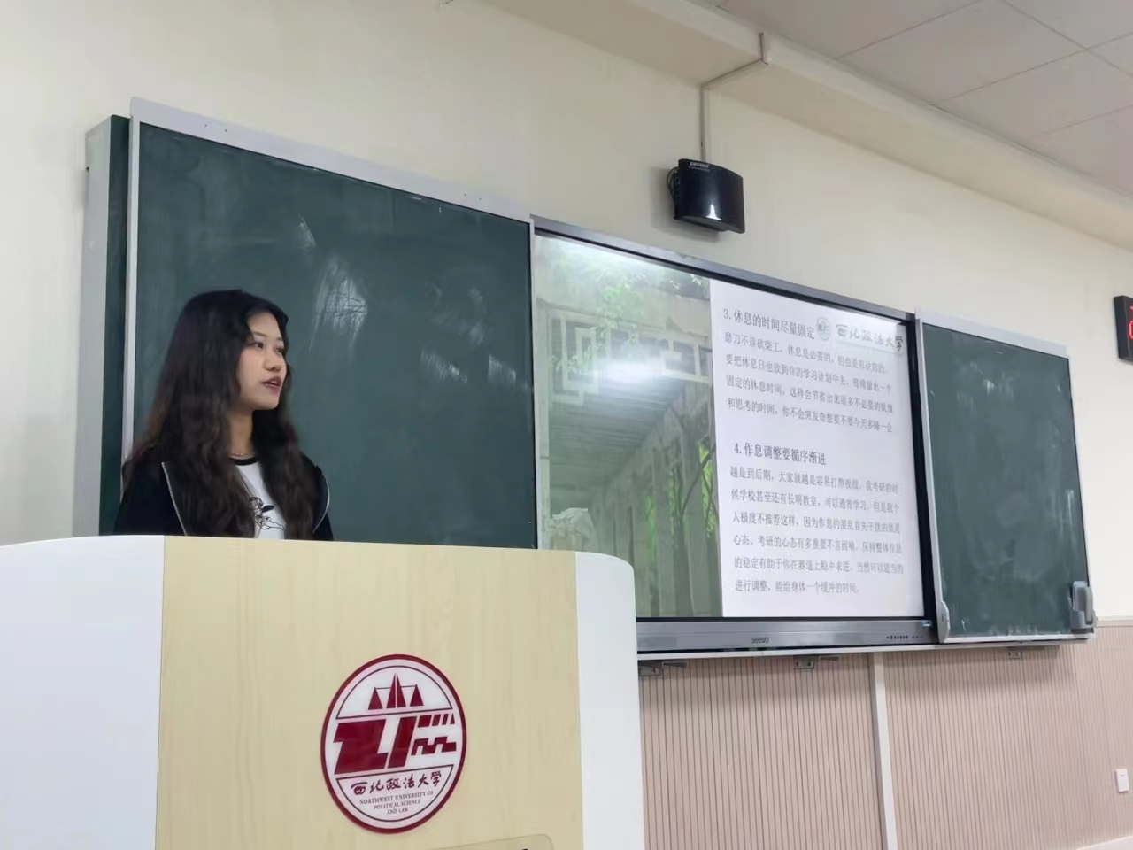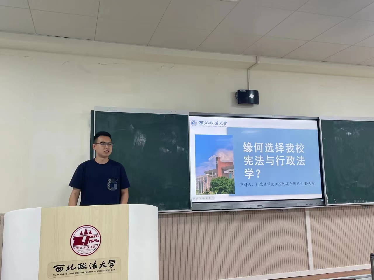 教师代表周敏副教授结合“中国-中亚峰会”以及参与的科研项目为例,指出宪法学与行政法学学科涉猎广泛、实用性强,周敏又结合建设法治国家、法治政府、法治社会目标对宪法学与行政法学专业进行系统性分析,使同学们更加了解宪法学与行政法学专业的知识结构与学科属性。