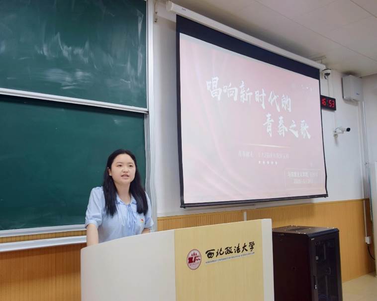 会上,王转军同学从“觉醒年代的青春之歌”、“知青岁月的青春之路”、“奋进征程的青春之贵”等方面带领大家领略青年先辈的心怀与理想,学习先辈们为中华民族复兴而奋斗终生的坚定意志。她向同学们讲述了习近平总书记青年时期到陕西省延川县文安驿公社的知青生活,形象地指出“习近平总书记的七年知青岁月就是青年一代励志成才的生动教材”,激励同学们为全面建设社会主义现代化国家贡献更多力量。