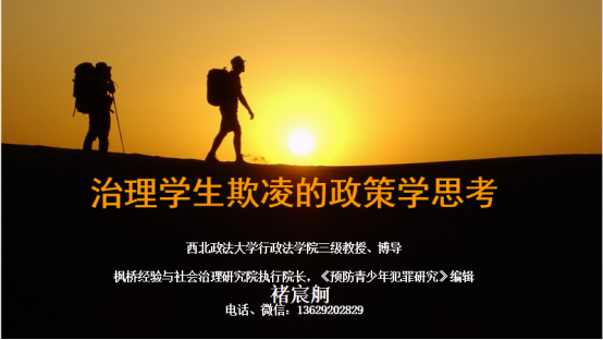 西北政法大学行政法学院(纪检监察学院)褚宸舸教授在专题研讨二“涉未成年人等新型犯罪治理与权利保护”环节进行主旨发言。该专题研讨由西南政法大学法学院袁林教授和卢有学教授主持。在本阶段,褚宸舸教授借助陕西省学生欺凌调查报告对学生欺凌的现状、问题、政策法律体系以及治理手段等作了交流分享。
