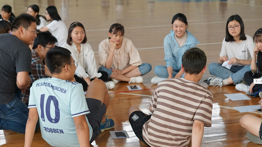 首先进行的是热场环节。在场同学每四人一组,围坐一起,依次询问右侧同学一个问题,被询问的同学相应进行反向回答,各同学之间交流频繁,妙“问”频出,一时师生欢愉,气氛融融。