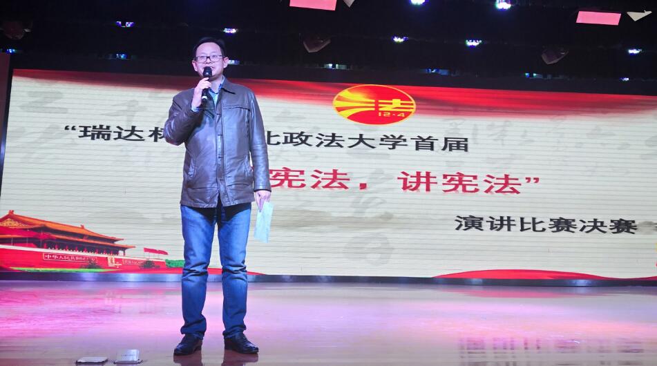 的辛苦付出表示感谢。他指出今年的“12.4”国家宪法日是2018年宪法修正案通过后的第一个国家宪法日,在今天举行此次演讲比赛意义重大,选手们的表现很精彩,通过此次活动要在学生中营造学宪法、讲宪法的法治文化氛围。