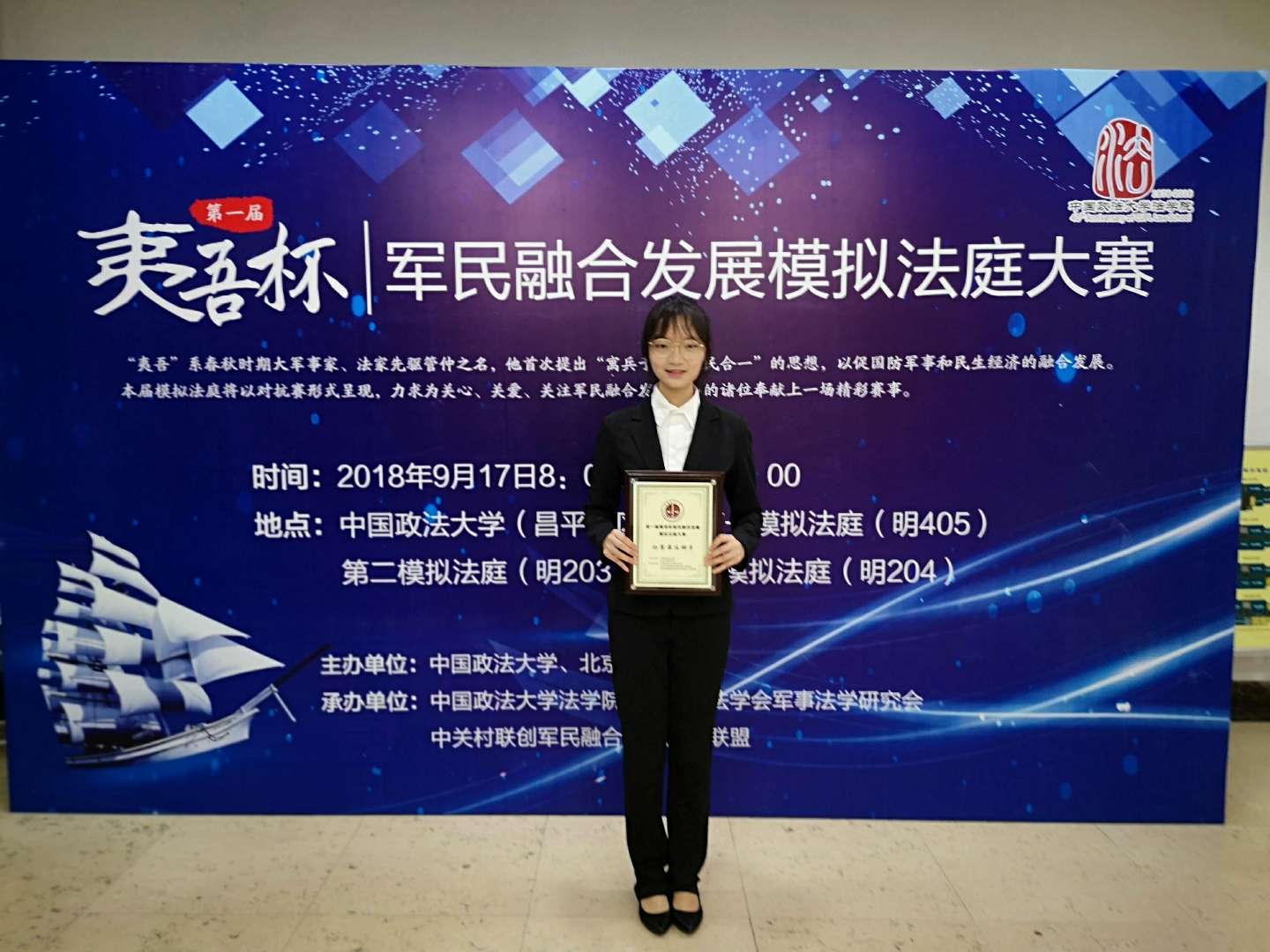 同时,我校还取得初赛最佳起诉状、初赛最佳答辩状两项奖项,队长赵涵同学被评为初赛最佳辩手。