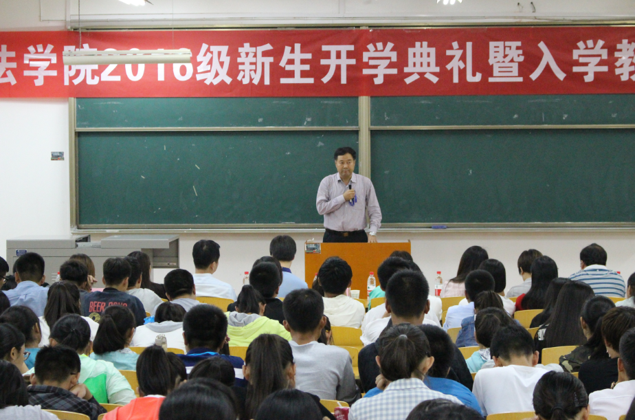 2016年9月26日,西北政法大学德甲直播 2016级新生开学典礼暨入学教育大会于我校长安校区天平楼aj24教室隆重举行。德甲直播 院长王周户教授,德甲直播 党委书记孟红军老师,德甲直播 副院长姬亚平教授、李瑰华教授,院党委副书记李芳老师,学院办公室主任侯毅老师,团委书记鞠娟老师,学院第一团支委书记金惠萍老师,2016级辅导员朱骞老师,学院教务处崔小宜老师、马思杰老师,以及德甲直播线上看 教师代表张佐国老师莅临本次大会,并由李芳老师担任大会主持。此次教育大会意在培养同学们的专业思想与职业精神,端正同学们的学习态度,提高同学们对大学生活的认知水平,促进同学们尽快适应大学生活。