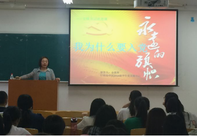 2016年5月29日晚19时30分许,我学院党委安排2013级学生党支部书记金惠萍同志讲党课,党课以“我为什么要入党”为主题展开。