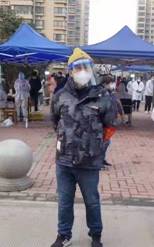 ▲姬亚平老师准备上岗 ▲李芳老师帮助医护人员着防护服 ▲金惠萍老师维持现场秩序