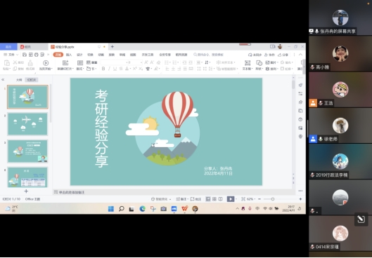 (纪检监察学院)2019级辅导员徐泽蓉主持,并邀请本院2018级6位成功上岸本校的本科生进行分享交流。