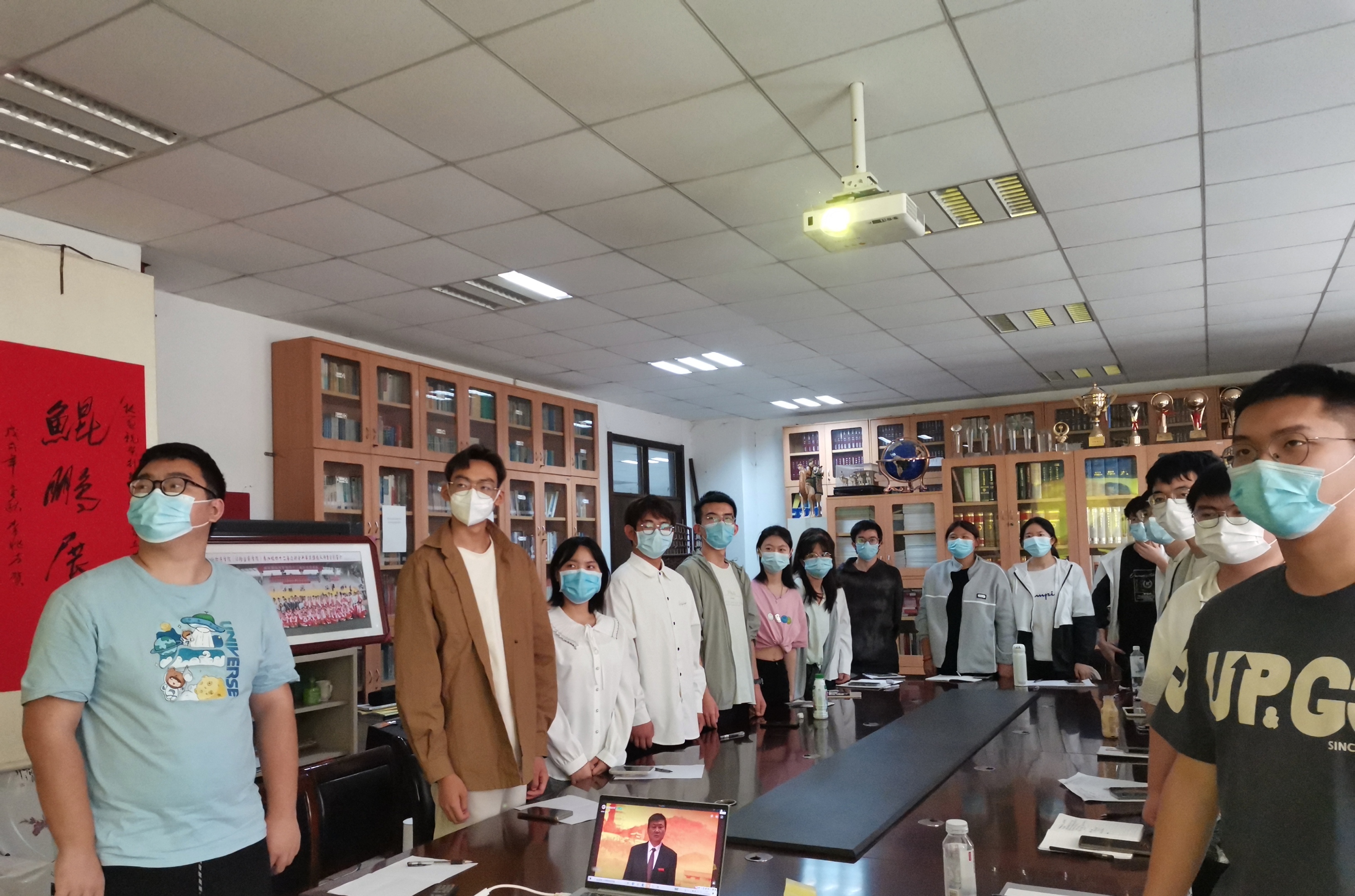在雄壮的国歌声中,新生开学典礼正式拉开序幕。全体师生庄严肃穆,齐唱国歌。