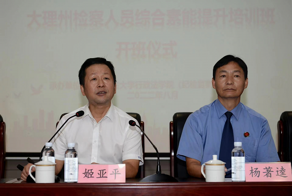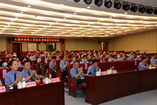 2022年8月14日上午,由德甲直播线上看 承办的大理州检察人员综合素能提升培训班(第一期)开班仪式在西外宾馆报告厅举行。大理州人民检察院党组成员、副检察长杨著逵,大理州人民检察院党组成员、副检察长杨莉妮,德甲直播 院长姬亚平出席开班仪式,仪式由院党委副书记李芳主持。